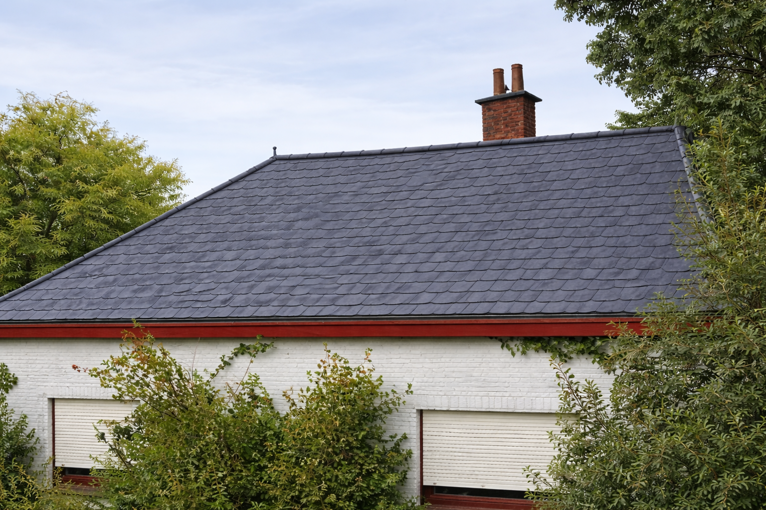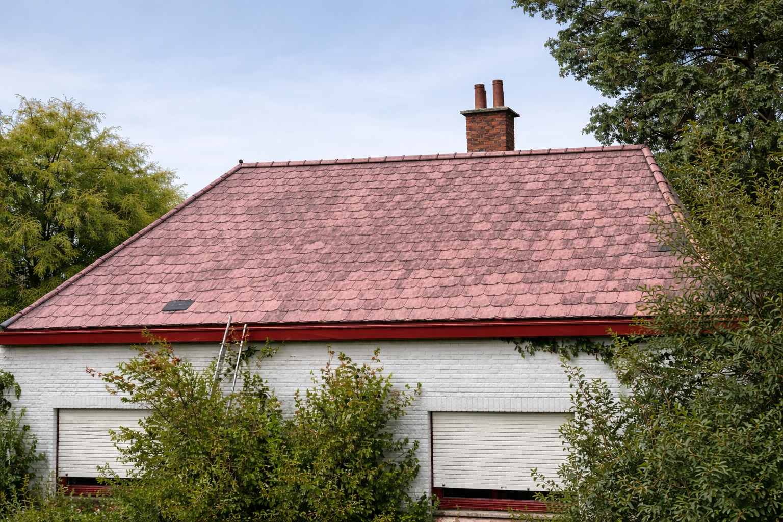Afin de redonner un aspect propre et uniforme à la couverture, une intervention de nettoyage complet de la toiture suivie d’une mise en peinture des tuiles a été réalisée.